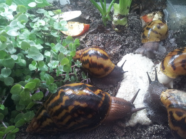 Wunderschöne Schnecken hast du..., am allerschönsten finde ich da deine Archachatina adelinae!!!... und dein Terraregal und die Einrichtung mit den echten Pflanzen finde ich ja auch toll!!