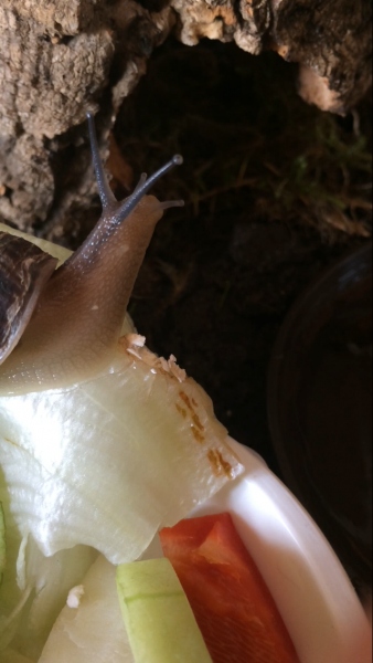 Ach ja - endlich habe ich Lissy vor die Linse bekommen. Ich hänge hier mal Bilder an. Lissy wohnt aktuell seperat, weil sie so klein ist, dass ich die sorge habe das ich sie sonst mal übersehe und sie die Futterschale abbekommt oder so. Damit sie nicht so alleine ist habe ich zwei Bänders dazu gesetzt - Saisonarbeiter sozusagen ^^. Ich werde sie im Herbst wieder frei lassen denke ich. Klar ist eine Bänderschnecke kein Artgenosse für meine Lissy. Aber so ist es denke ich besser als wenn sie ganz alleine ist.