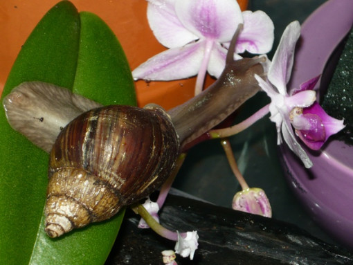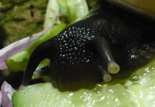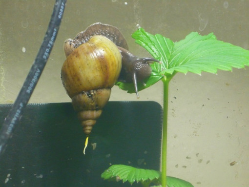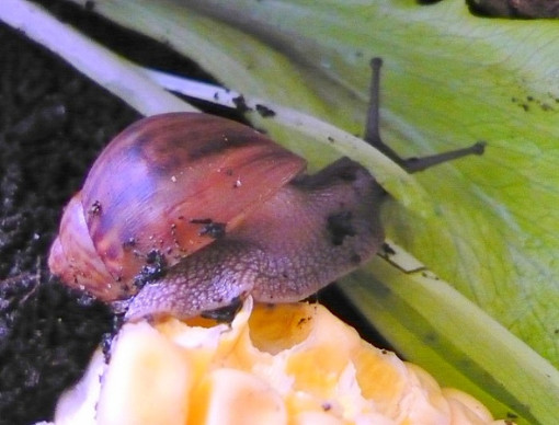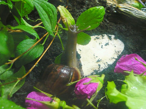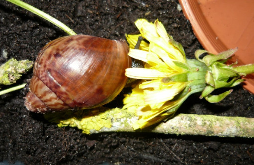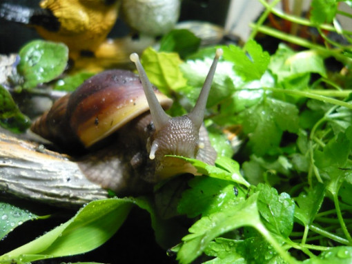 Und auch die müdeste Schneck läßt sich mit einem Salatblatt aus dem Laubparadies hervorlocken...