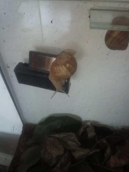 Ich bin mir nicht sicher, ob das weiße Haus bedeutet, daß die Schnecke schon älter ist, oder ob es eine Farbvariante ist. Wenn es am Alter liegt, würde das bedeuten, daß das Periostrakum schon verwittert ist. Das passiert aber auch, wenn der Boden auf dem sie bisher gelebt haben zu sauer war- unabhängig vom Alter. Und ich hab auch noch nie eine kleine Weiße gesehen; das spricht wiederum für das höhere Alter...