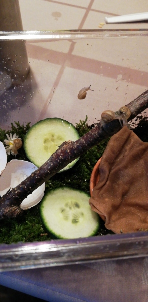Seit 6 Tagen habe ich nun endlich 6 Hainbänderschnecken und 4 cornus aspersum.