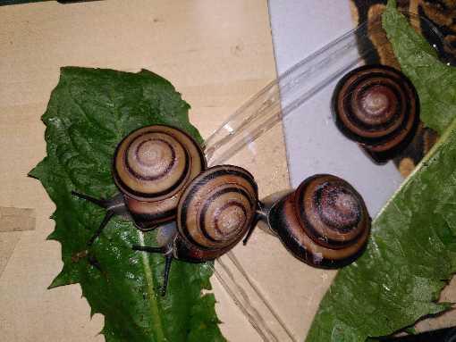 Seit Samstag leben nun auch vier kleine Caracölchen bei uns. Da sie in einem Exo Terra mit Flügeltüren leben und so schön gestreift sind, hatte mein Freund die ulkige Idee die kleinen nach den Daltons zu benennen