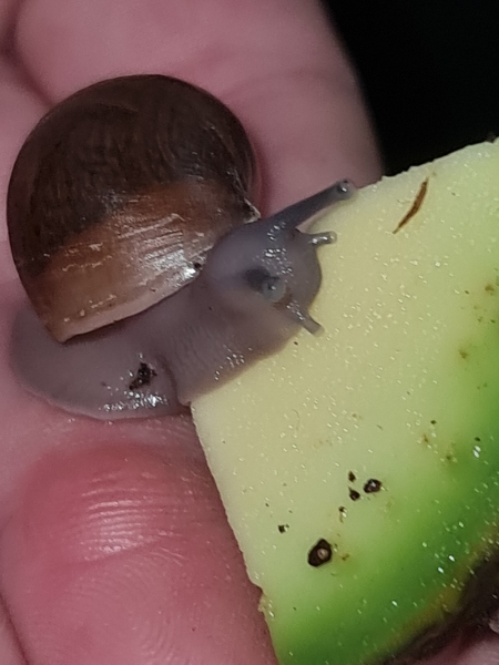 hat die Schnecke auf dem ersten Photo einen Riss im Häuschen? Schauen da Weichteile hervor?