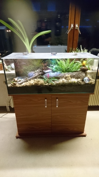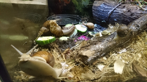 Hier mal Bilder von meinem Terrarium....derzeit halte ich Axhatschnecken Achatina fulica , Weinbergschnecken und Bänderschnecken. Ich bin dabei auch noch ein zweites,. kleines Terrarium einzurichten um möglicherweise Schnecken zu trennen. Derzeit achte ich darauf Schnecken zu bekommen die ich z.b bei 21 Grad vertretbar halten kann. Ich habe natürlich eine Heizmatte mit Styropor als Dämmung an der Rückwand- hier dürfte es auch wärmer sein, aber ich möchte mich auf leichter zu haltende Arten konzentrieren und es gibt hier ne Menge...ein Hobby bei mir das gerade erst richtig anfängt.
