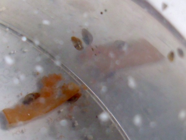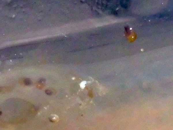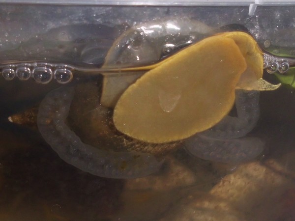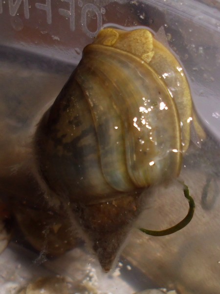 Zum Futter: Gurke belastet das Wasser extrem, was bei so einem kleinen Wasservolumen auch gerade für die Kleinen evtl. ein Problem sein könnte. Versuchs alternativ mal mit z.B. ein bis zwei tiefgefrorenen Erbsen (aufgetaut und zerdrückt), oder einer Karottenscheibe. Frisches Gemüse immer kurz mit kochendem Wasser überbrühen, ebenso Grünfutter, das du von draußen einbringst. Der Renner hier sind Hokkaido-Scheibchen *g. Alternativ gäbe es noch Spirulina- oder Spinat-Sticks (Fisch- bzw. Garnelenfutter). Und junge Brennnesselblätter (auch vorher überbrüht). Ein mit Algen bewachsener Stein wäre sicherlich auch der Renner.