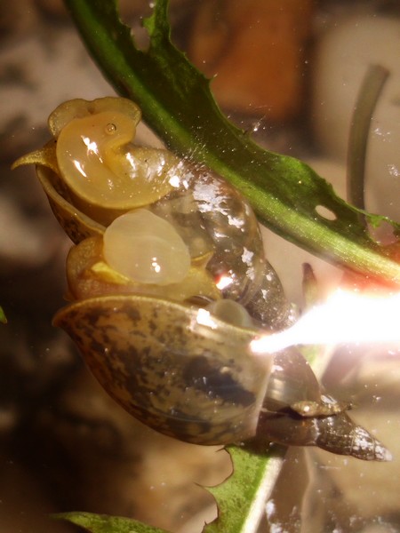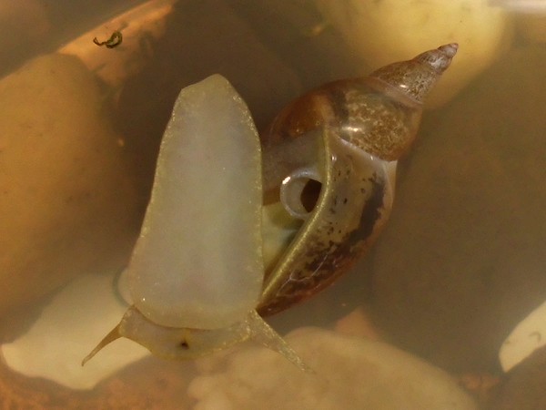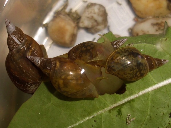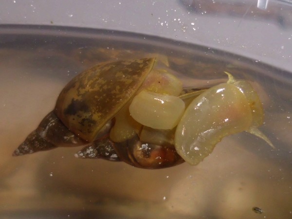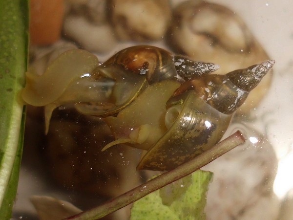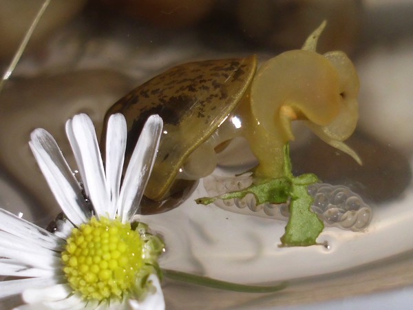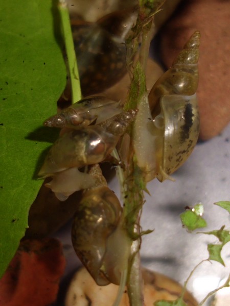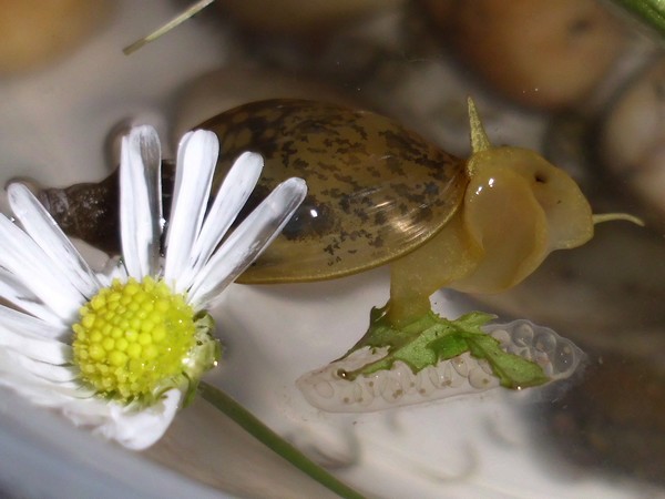 es ist nun ja schon ein Monat seit dem letzten Beitrag vergangen... Inzwischen habe ich schon einen Teil der Schnecken in den Teichen der Sequoiafarm ausgewildert, na ja, nicht selbst, da war am Ende zu wenig Zeit, aber jedenfalls das Eimerchen übergeben. Der Rest ist immer noch bei mir, und einige sind schon recht gut gewachsen. Heute musste ich unbedingt wieder Nachschub an Löwenzahnblättern holen, die zarten jungen, dabei stellte ich fest, dass ich die Versorgung mit Futter mit einer Umsiedelung verbinden sollte. Das Wasser in einem Gefäß war etwas trüb, das hatte ich nicht so im Blick.