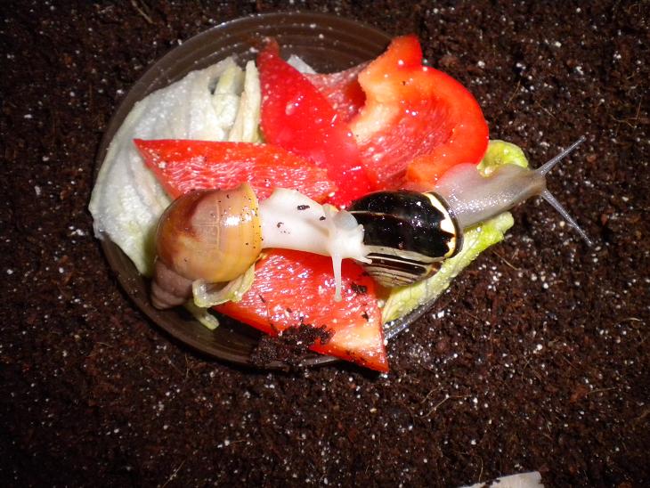 Heute hat mein Freund an unserer Hauswand wieder eine Schnirkelschnecke gefunden und lustigerweise war es exakt die selbse mit der selben Delle. Es war heute Mittag furchtbar heiß und er hatte Angst, dass sie vertrocknet, darum sitzt sie jetzt gemütlich hier drin bei uns in einer Schale voll mit Salat.