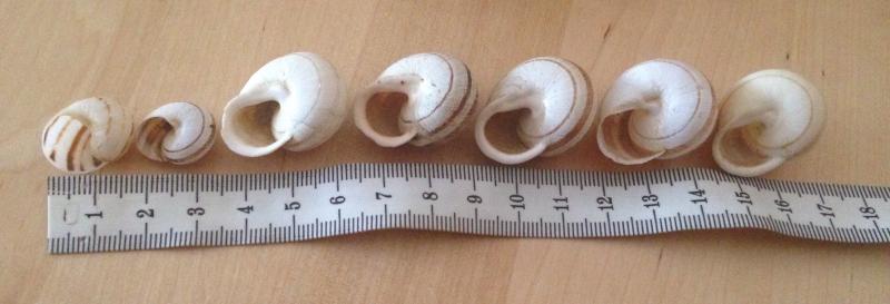 Zum Vergleich ein paar der anderen, wobei ich die kleine links außen für eine andere Schnecke halte?
