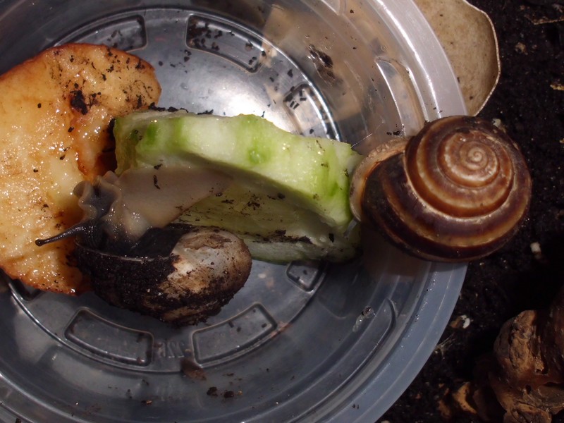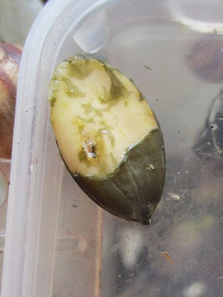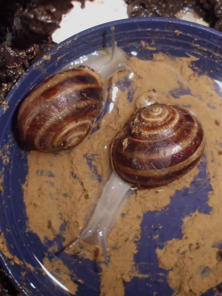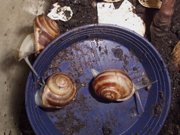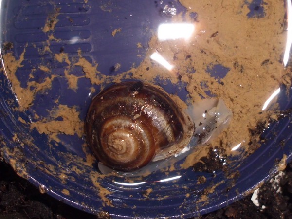 Die Heilerde bedeckte mal den ganzen Boden der Badeschale. Dann kommt aber meistens schnell einer zum "Reinemachen". Die Lümmel tun aber nur so als ob sie saubermachen wollen. Was die an "Schneckengirlanden" im Wasser lassen...