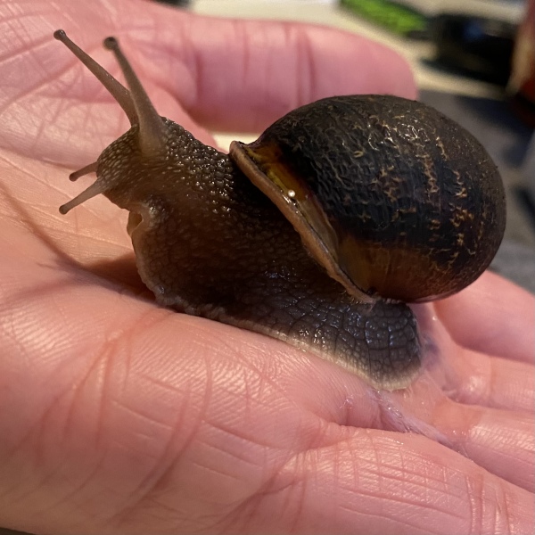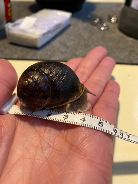 Nun ist Schnecki vor 5 Monaten geschlüpft und richtig groß und dunkelbraun geworden.