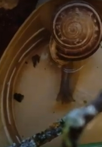Trockenruhe hält meine Otala nicht, sie hat ja trotz Sommerhitze bei uns nicht dieselbe Dürre und Hitze wie im südspanischen Freiland in ihrem Terra. Im Winter begab sie sich mit den Bänderschnecken (Cepaea Nemoralis) in einen Winterschlaf.