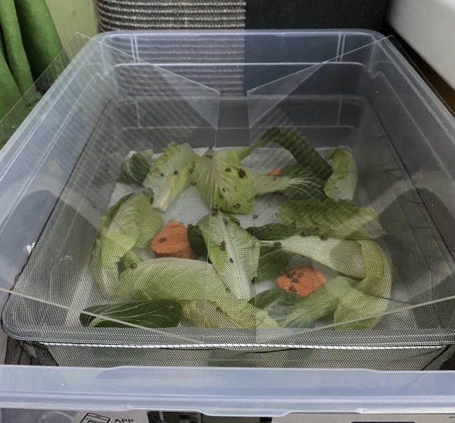 mit einem gitter/netz-deckel lässt sich bestimmt etwas verbessern, die geschlitzten deckel von faunaboxen sind ungeeignet, finde ich. falls du sie dauerhaft in einer box halten möchtest, würde diese adaptieren-in anlehnung an ein terra mit lüftungsschlitz u „offenem“ deckel. zb. eine bodennahe lochzeile in eine lange seitenwand bohren, etwa 2, 3 cm oberhalb vom substratrand und als abdeckung ein fliegengitter. 40x25 kommt mir auf dauer etwas klein vor. hatte hier öfter von mindestmaßen 60x30 gelesen. sie sind schon recht fleissig unterwegs.