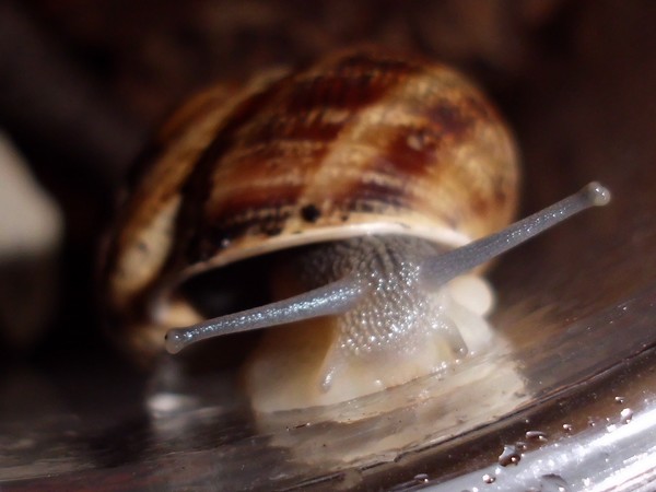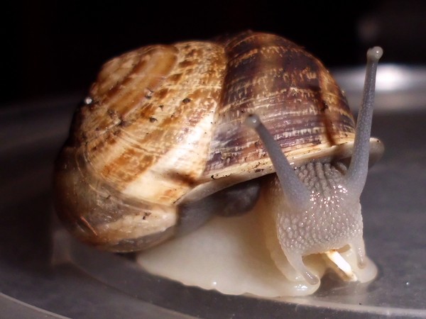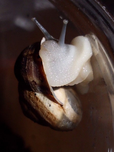 Im Moment hat sie wieder die normalen Schlafphasen und ist zwischendurch munter. Und wenn ich ihr den Finger in den Weg halte, reckt sie sich etwas vor und raspelt ein wenig daran. Das erste Mal war ich doch etwas erschrocken, da hatte ich nicht mit gerechnet. Die Bänderschnecken machen das auch, das habe ich später mal getestet.
