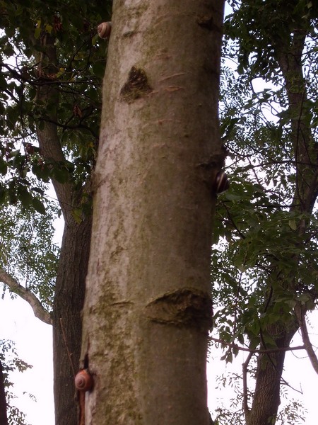 An dem Baum, der als Ruheplatz für mehrere Schnecken gedient hatte (bevor ich ein drittes Mal dort vorbei kam