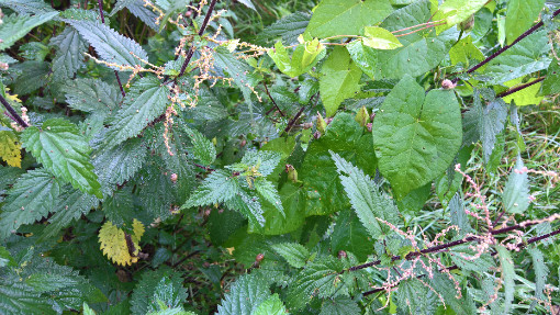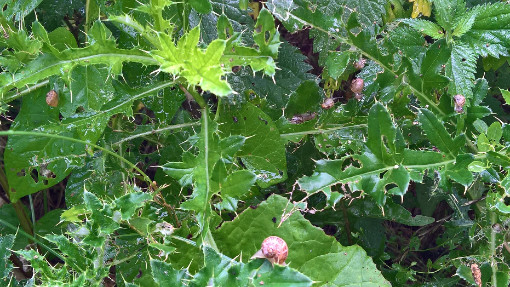 Kastanienblatt unter dem Kastanienbaum der neben Hecke steht und auf der anderen Seite ganz woanders da saß die große unter Hortensiengewächs an einem Blatt drauf. Es sind auch immer wieder Vögel dort, weil ich auch schon einige leere Bänderschneckenhäuser gesehen habe, darum hab ich die beiden erstmal zu mir. Ich weiß nun nicht ob diese auch unter Naturschutz stehen