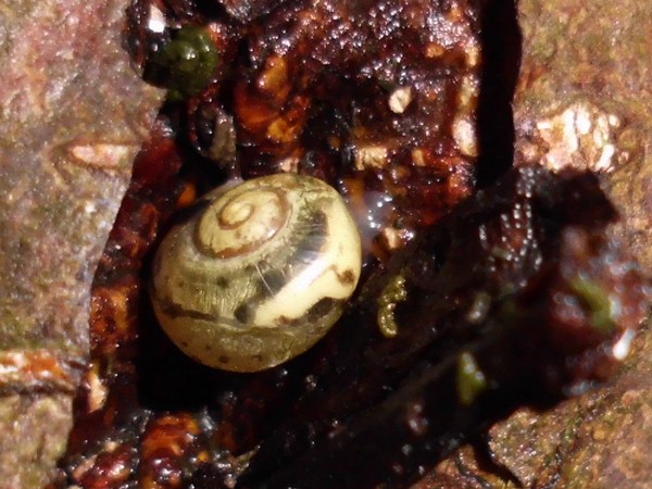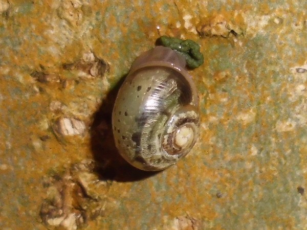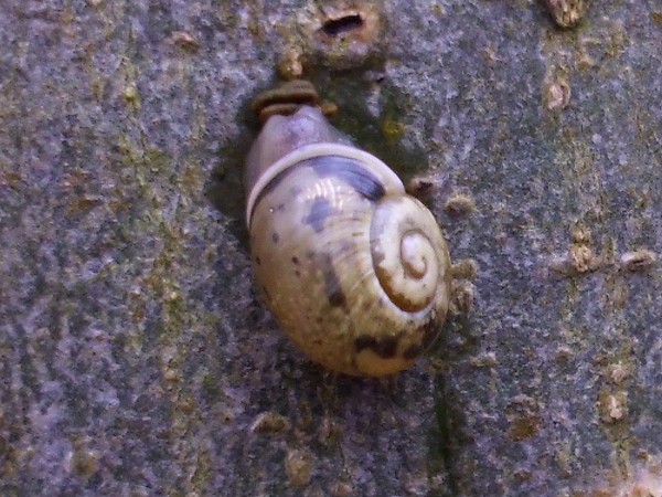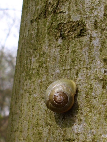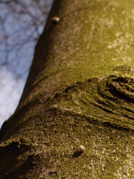 An zwei Stämmen in der Nähe dann noch diese beiden kleinen Knubbels, bei denen ich aber nicht sicher bin, ob es Bänderschnecken sind. Niedlich sind sie aber allemal.