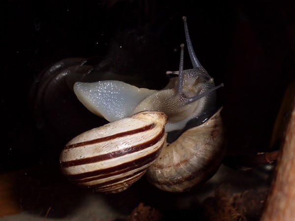 Bei den Bänderschnecken hat man immer den Eindruck von einem kleinen Boxkampf, aber bei den Nudelschnecken wirkt es wirklich sehr liebevoll.