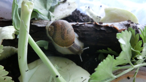 Schnecken sind ja sehr soziale Lebewesen. Wenn ich am Abend zB. irgendwelche Hausarbeiten verrichte, klettert sie oftmals an mir rum und ist ziiiiemlich neugierig.