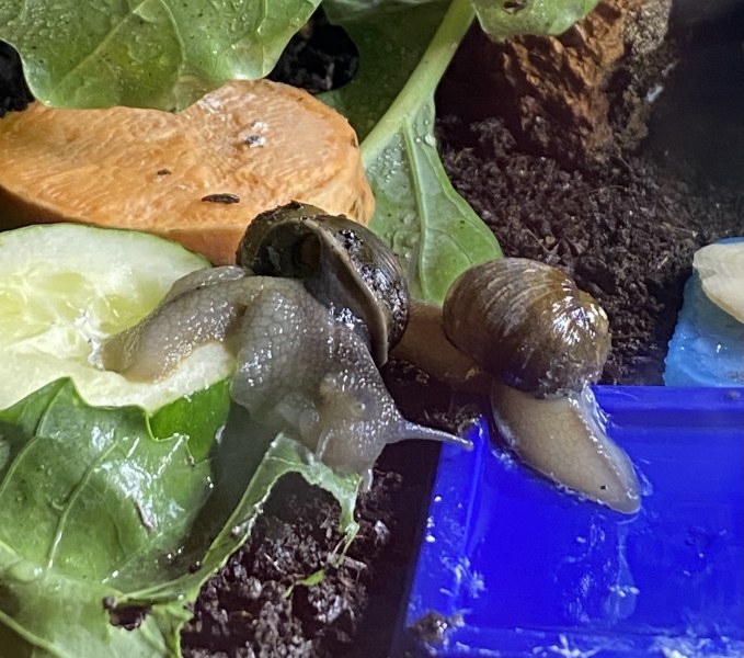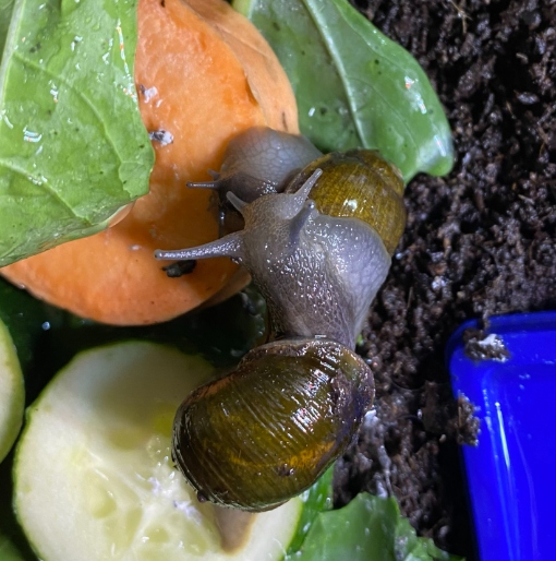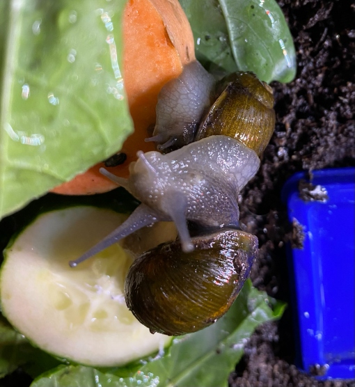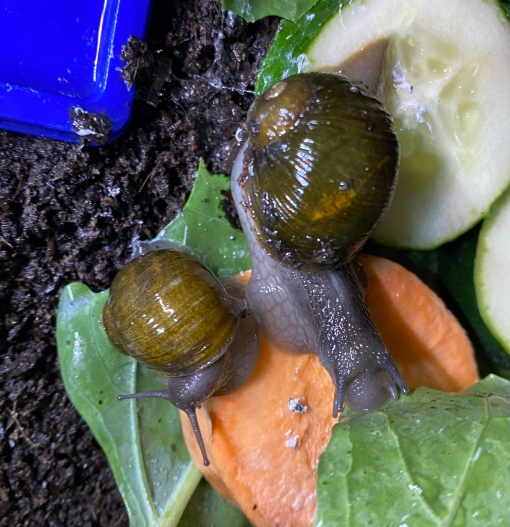 Hab mich gerade frisch hier registriert, damit ich unserem Schnecki, auch ein Grunzi, eventuell die Möglichkeit geben kann, gleichgesinnte Gesellschaft zu finden. Es waren Anfangs 3 die in einem Bio-Salat aus Italien fast aufn Teller landeten bzw. im Salatabwasser mir fast ersoffen sind. Doch nach erfolgreicher Identifikation wurden sie schnell ins Herz geschlossen und so wurden sie liebevoll aufgepeppelt und entwickelten sich prächtig.