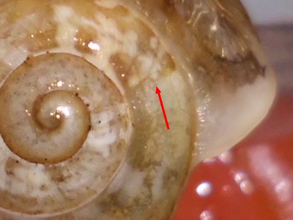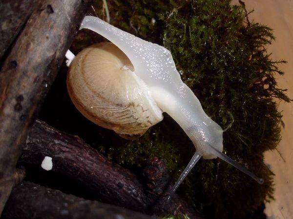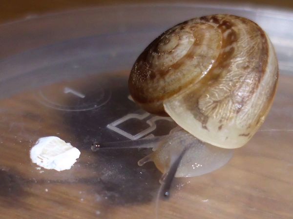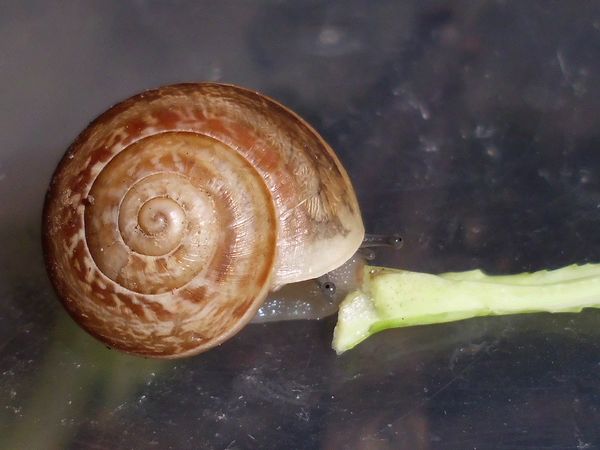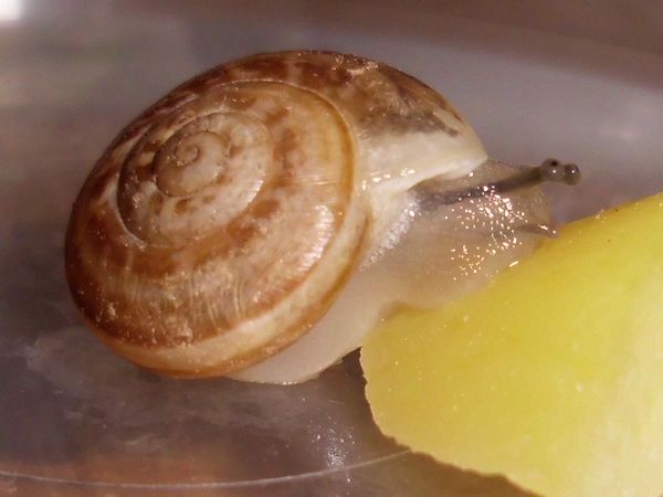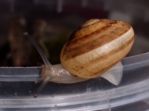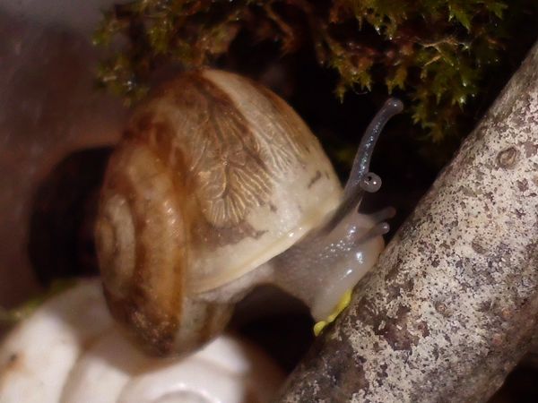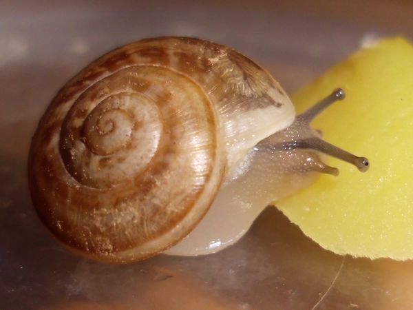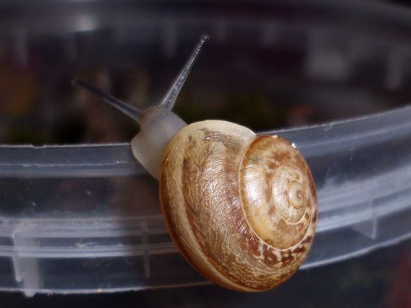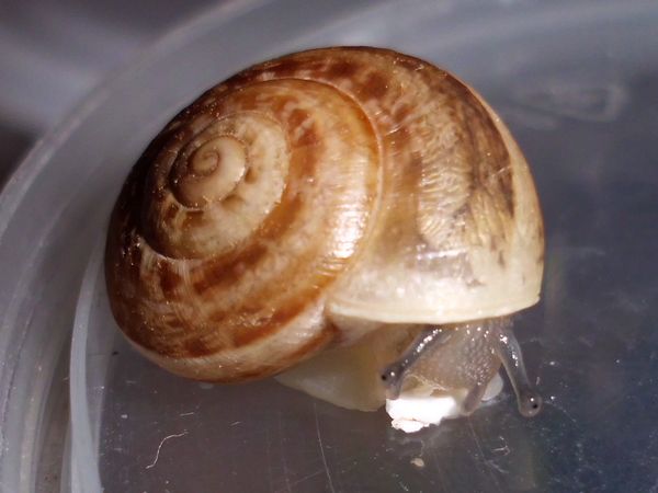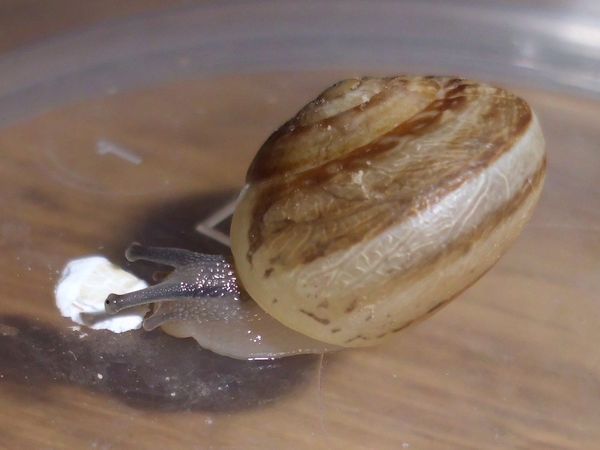 Sie hatte sich nicht komplett in ihr Häuschen zurückgezogen, aber alle Fühler eingezogen. Sieht irgendwie seltsam aus.