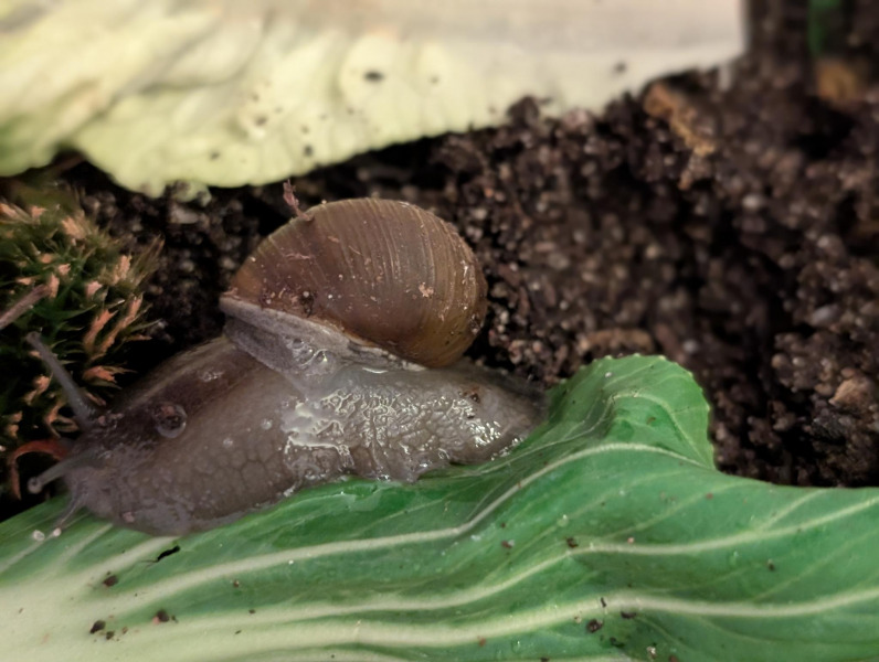 Der pH Wert im neuen Schnecken Domizil passt und so konnte Diva gerade endlich ihren Umzug vollziehen.