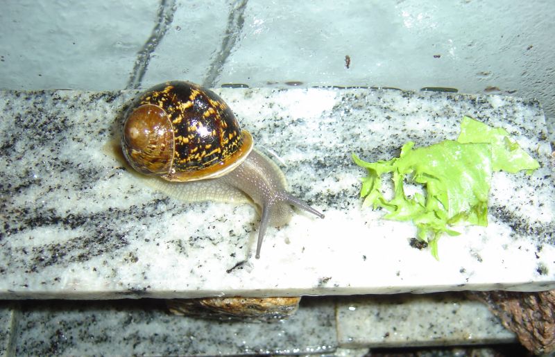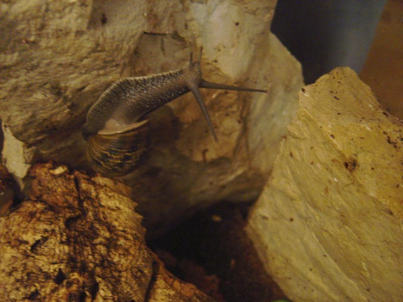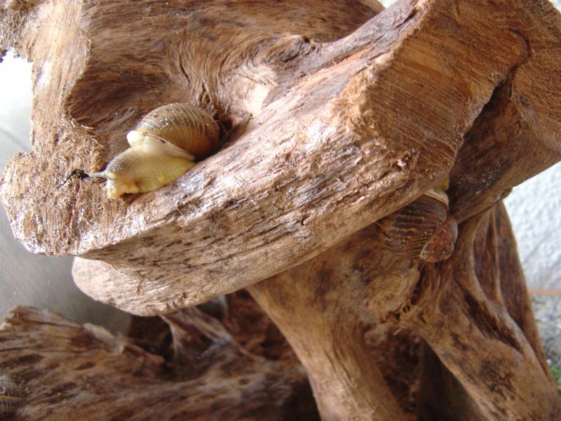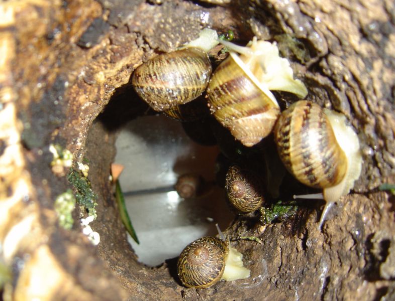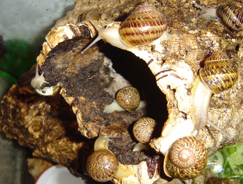 Wird das Terrarium mal gereinigt, neu arrangiert und neue Erde eingefüllt (aufgeweichte Cocos-Briketts mit Kalk angereichert), müssen die Schnecken mal für eine Weile woanders rumspielen. Achtung, dass keine entwischt.