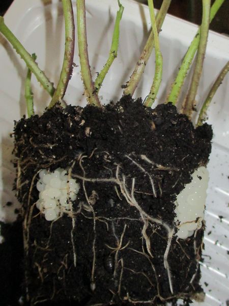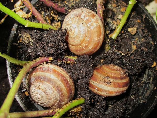 Als zwei Tage später der Topf "schneckenfrei" war, habe ich aus ihm die Pflanzen rausgeholt und wie erwartet mehrere Gelege gefunden.