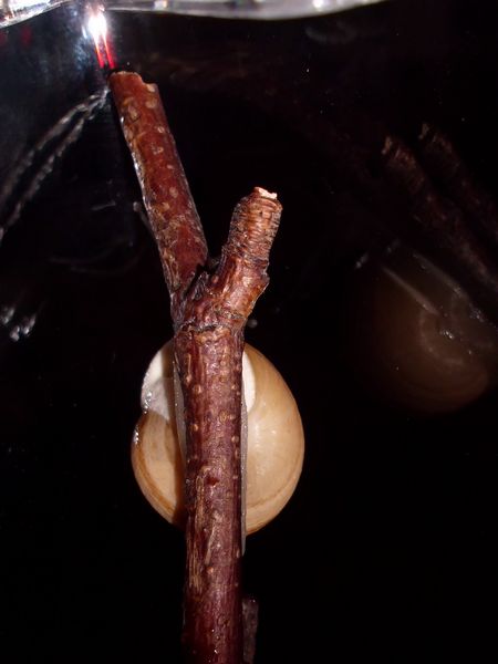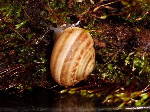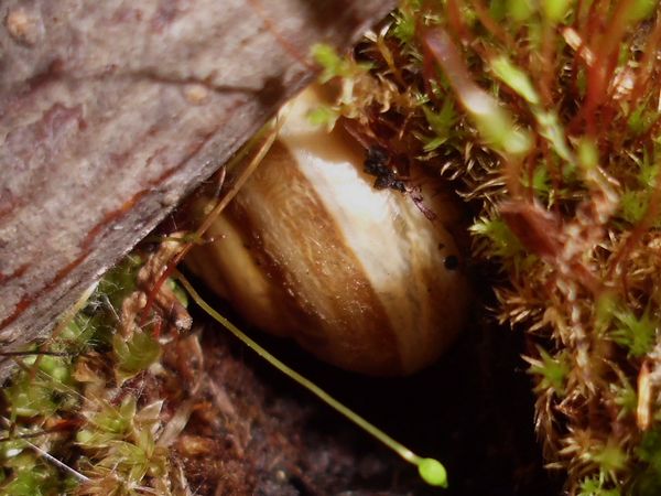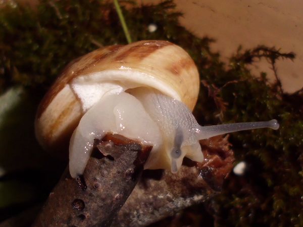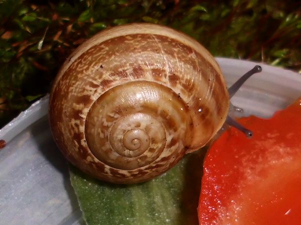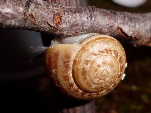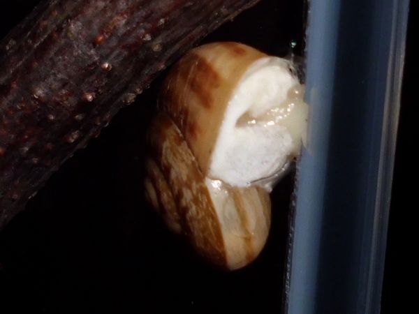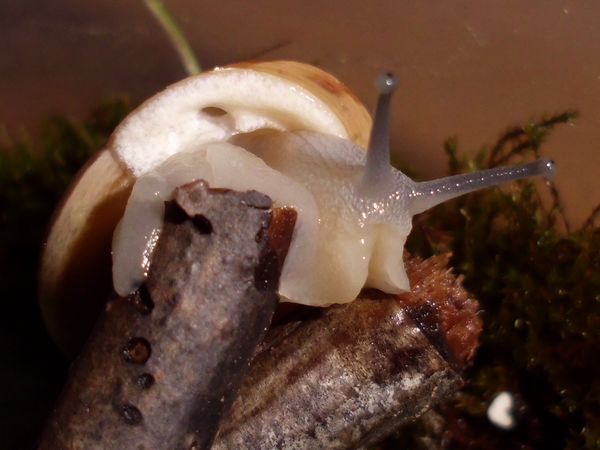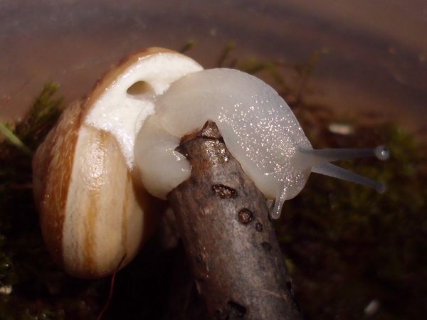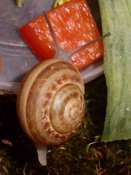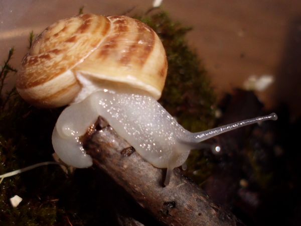 Am Freitag war ich zu Hause, kam aber nicht weg. Allerdings habe ich noch eine grüßere Menge Anzuchterde; da die ziemlich ungedüngt ist, kam erstmal eine Lage unten rein. Im Balkonkasten hat sich außerdem viel Moos breit gemacht (kam voriges Jahr nicht zu Neubepflanzungen), das schien mir eine schöne weiche Unterlage zu ergeben, also wurde die Erde darunter versteckt. Es waren dazu noch einige ältere Zweige vorhanden (zum Zurechtschneiden, falls ich mal wieder Kletterhilfen für Falterzuchten brauche), davon passten zwei sehr gut schräg hinein. Nur mein Schnecklein beschloss, dass es grad eine ausgiebige Ruhepause brauchte, und da wollte ich es nicht stören.