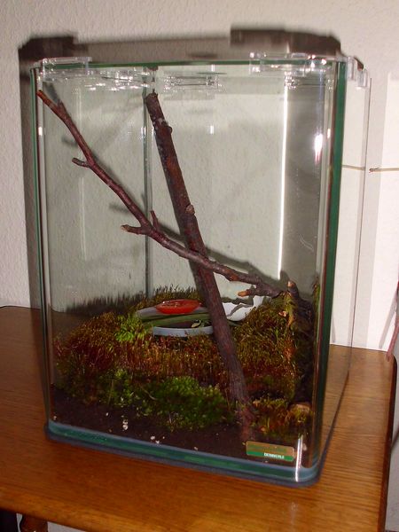 Später unternahm sie noch viele ausgiebige Wanderungen die Glaswände und die Abdeckung entlang. Vermutlich war sie doch froh, aus der recht beengten Dose heraus zu sein.