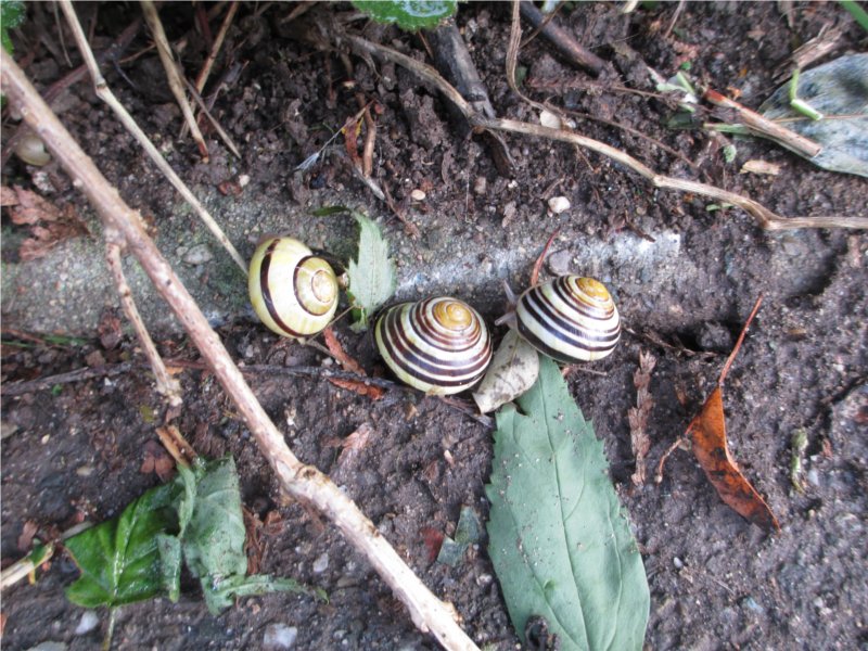 . Allerdings sind die ersten zwei wahrschenlich keine Schnirkels (ich weiß nicht einmal was die erste für eine ist...). Bei mir gibt es leider keine Baumschnecken oder Bänderschnecken mit dunklen Körpern, dafür aber viele Weinbergschnecken und jede Häuschenfarbe und Bänderung an Bänderschnecken