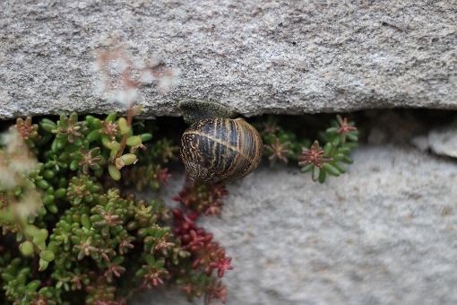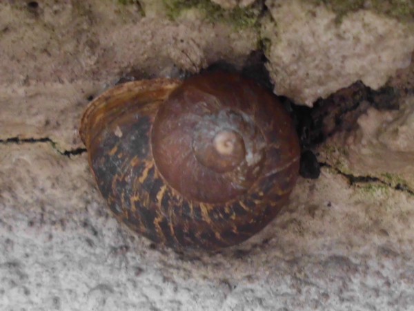 Seit 2013 bin ich vom Frühjahr bis zum Herbst an fast allen Sonntagen anderweitig beschäftigt, da bleibt leider nicht mehr so viel Zeit für Spontan-Exkursionen, aber jetzt wollte ich doch mal wissen, wie es der Kolonie geht. Die Mauer, an der sie verteilt sitzen, ist übrigens rund 400 m lang, da gibt es dann größere Lücken, bis wieder eine Schnecke kommt.