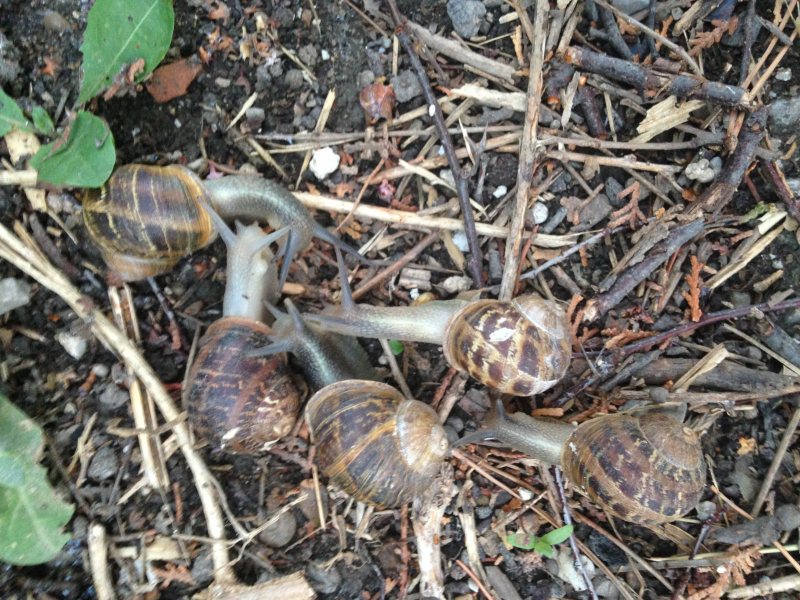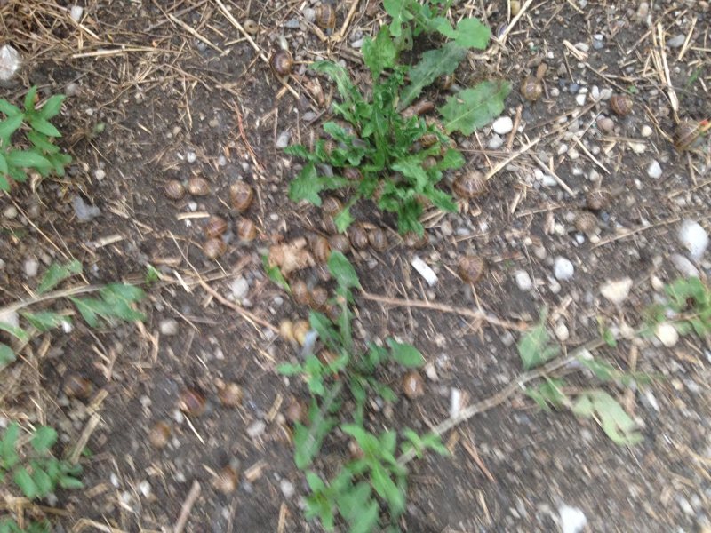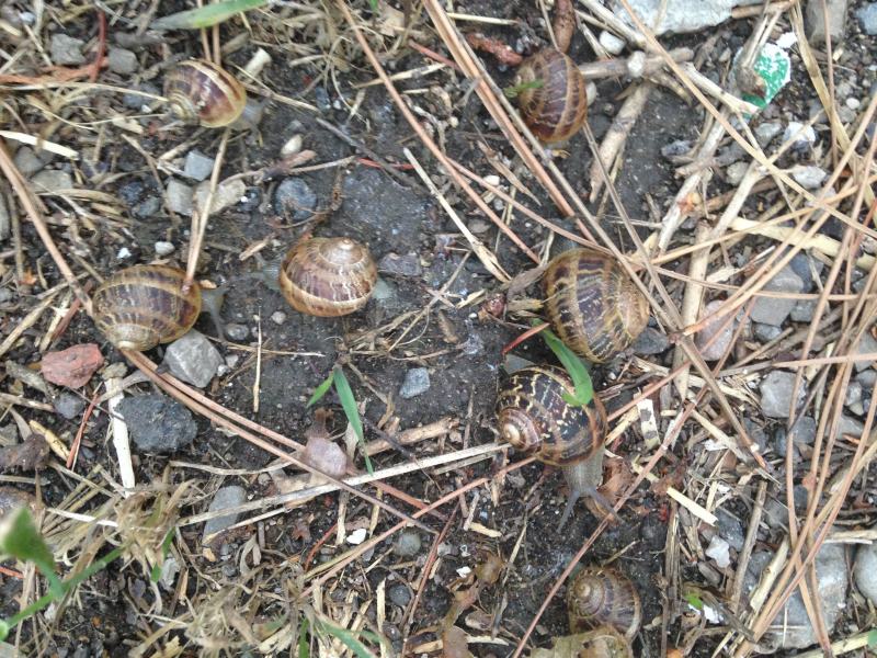 Ein Jahr später war ich Ende Juni noch mal dort, um diesmal gezielt nach ihnen zu schauen. Das waren insgesamt 110 Schnecken. Eine weitere Zählung machte ich Anfang August 2012 und kam auf rund 80 Schnecken. Anekdote am Rande: bei einer dieser Zählungen hatte am Ende die Kamera den Dienst aufgekündigt. Vermutlich war sie total verschleimt...