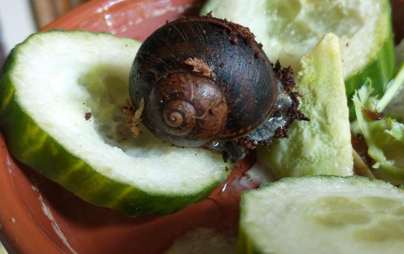 meiner Mutter ist bei der Gartenarbeit das folgende Schneckchen über den Weg geschleimt. In den 30 Jahren, in denen sie im Südwesten Berlins lebt, ist ihr eine solche Schnecke noch nie begegnet, sagt sie. Sie fühlt sich sehr an Weinbergschnecken erinnert, jedoch ist diese hier kleiner und hat ein dunkles Häuschen. Aus Sorge, dass es sich um eine eingeschleppte Art handelt, die den Winter nicht überstehen kann, hat sie sie erstmal in ein Terrarium gesetzt, würde sie aber gerne so bald wie möglich wieder in die Freiheit entlassen, wenn geklärt ist, um was es sich handelt.