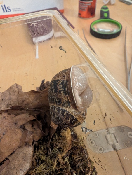 ich mach die Erde gut feucht nach der Eiersuche, ich hab eine "Feuchtecke" wo ich Waldmoos in einer Ecke platziere, und eine " Trockenecke" wo viel Laub ist und auch ihre Korkröhren und Blumentöpfe ( Schlafgemach) ist. So können sie wählen was sie grad mögen, und es ist in der Tat sehr unterschiedlich, manche verbuddeln sich lieber im Moos und pennen oder eiern, andere wollen lieber ins trockene Laub und ruhen oder fressen dort ( mit Vorliebe Buchenblätter).