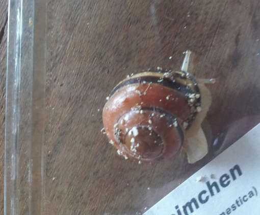 Wie einige von euch vielleicht mitbekommen haben, habe ich mir vor einiger Zeit einen blinden Passagier (Cepea nemoralis) ins Sutubecken eingeschleppt. Nun habe ich endlich ein schönes, artgerechtes Zuhause für die kleine gefunden. Gestern wollte ich sie schon versenden, aber konnte sie im großen Becken nicht finden