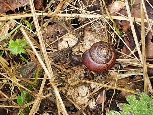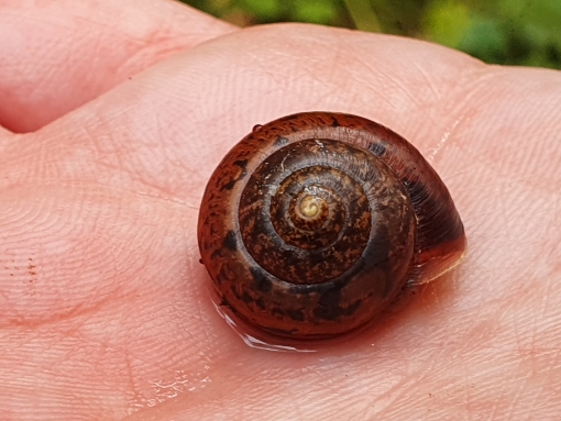 Dani und ich waren ja gestern im Wald unterwegs und außer den vielen Weinbergschnecken haben wir auch noch eine extrem hübsche kleine Schnecke gefunden, die wir nicht zuordnen konnten.