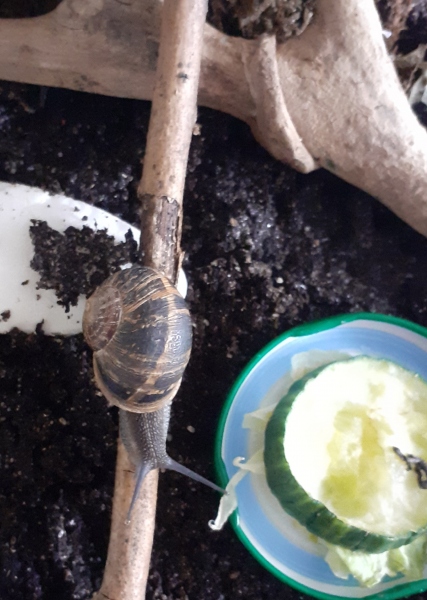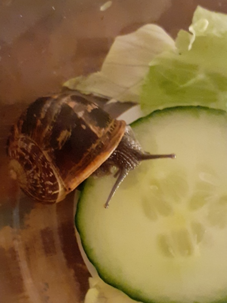 Ich hab die Schnecke erstmal in Gewahrsam genommen, bin mir ziemlich sicher mit cornu aspersum, aber ich glaube sie ist etwas unterernährt.