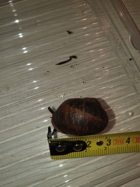 ich sehe in der Schnecke auch eine Cornu aspersum. Die Färbung und die Windungszahl auf die Größe, die dunkle Mündung und auch die Färbung des Weichkörpers mit dem deutlichen Aalstrich auf dunklem Grund. Vor allem aber die feinen, weißen Linien (finde die sehen wie eine alte Schrift aus) , sieht schon sehr nach Cornu aus.