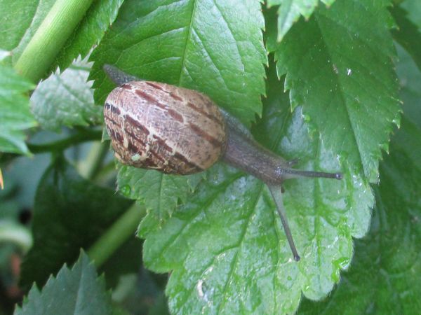 vom Rosenkäfer hat wohl schon jeder gehört. Ich konnte am Sonntagmorgen feststellen, dass es offensichtlich auch Rosenschnecken gibt.
