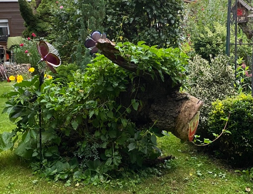 Das Beet in dem sie nun wohnen ist ca.10x2Meter, auf der Südseite, hat aber durch einen großen Hollerbusch relativ viel Schatten. Allerdings haben wir es im Frühjahr 2023 komplett neu gestaltet u. die neuen Pflanzen haben erst dieses Jahr den ersten Wachstumsschub gemacht. Ist also noch nicht ganz so schneckengerecht.