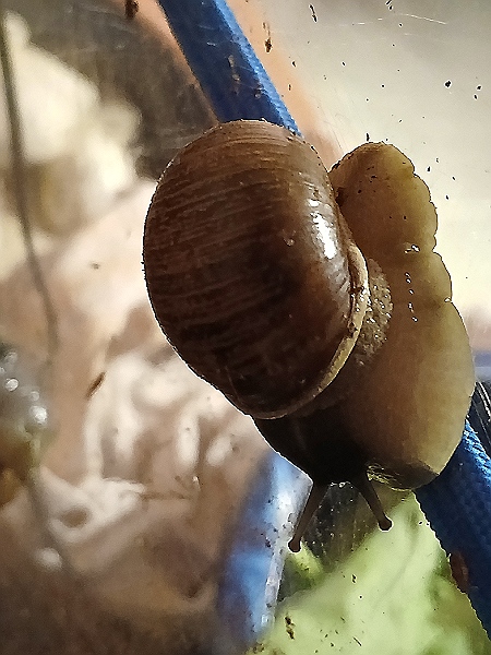 Ich brauche dringend Hilfe. Meine zwei Grunzschnecken fühlen sich sichtlich unwohl. Ihr Mantel ist geschwollen, sie sitzen zusammengezogen an der Scheibe, oft fast die ganze Nacht lang. Gestern ließ Giovanni sogar seinen Fuß seitlich abgeknickt. Es wird kaum gefressen.