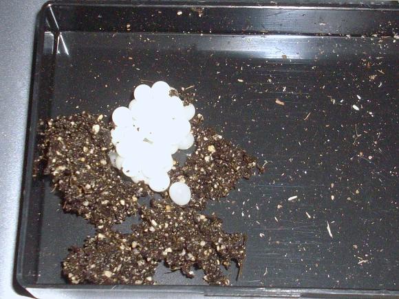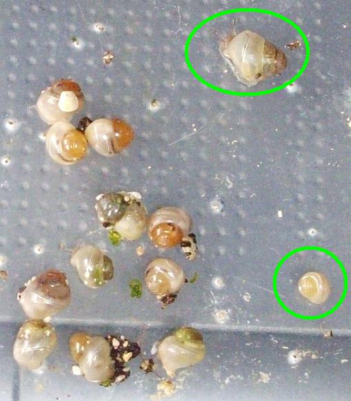 Aus dem gelben Gelege (11) sind grade mal 3 Schnecken geschlüpft und aus dem weißen alle 12.