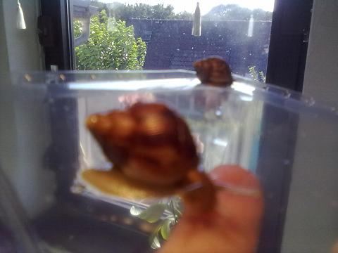 Wollte wieder meine Findelkinder zeigen, sie haben sich erholt, und ich glaube, sie werden leben und wachsen, denn sie sind sehr gute Fresser und wachsen langsam jetzt, haben einen schönen Wachstumsrand, jedoch wachsen sie irgentwie in die Breite und nicht in die Länge, wie ich es von meinen Schnecken kenne. Die kleinen werden eher kugelig von der Form, aber gaaanz niedlich, und die Farbe ist auch schön, leider erkennt man es nicht auf meinen schlechten Bildern, aber die Häuschen haben einen schönen braun-weinroten Unterton und die hellen Stellen sind fast rosa ! Hoffentlich werden sie ihre schöne Farbe behalten.