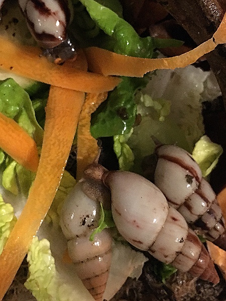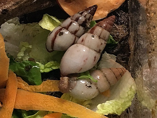 Die kleinen Limicolraria agathina sind unterschiedlich groß , weil die größere der Babys ( auf der grossen Schnecke ) schon vor gut drei Wochen geschlüpft ist. Ich aber mit Fotos noch warten wollte um zu sie besser zu erkennen. Und nun ein paar Bilder . Liebe Grüße Bambina