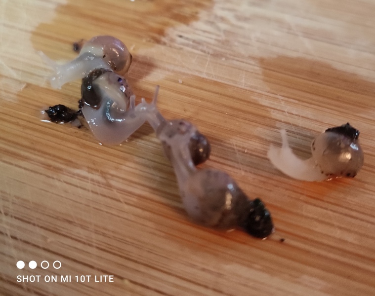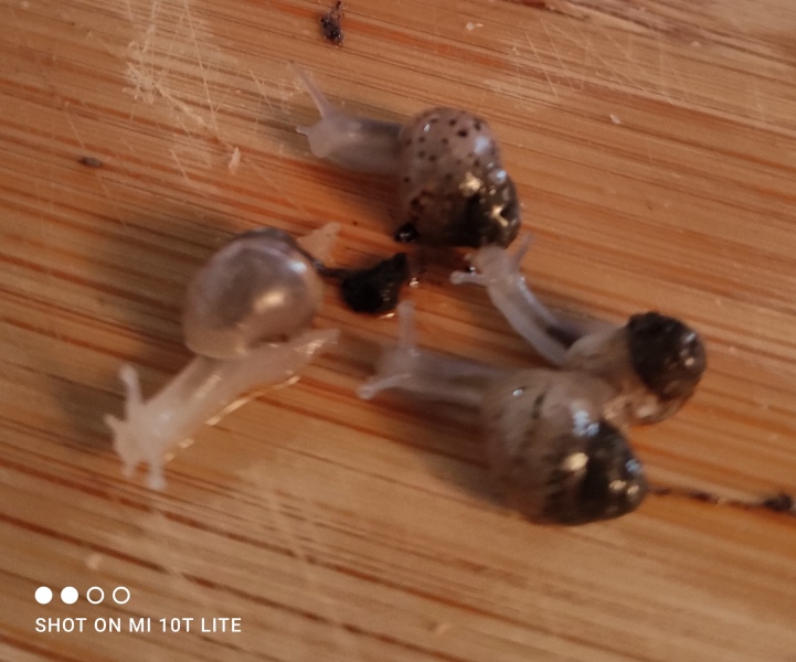 Wie oft sammelst du sie mit den Händen ein? So kleine Schnecken können sehr leicht kaputt gehen, wenn man sie anfasst, weil sie noch sehr sehr zart sind. Ich fasse ganz junge Babies gar nicht direkt an, sondern hebe sie nur mit dem Substrat, an dem sie kleben hoch. Zum Schlafen haben sie schräg auf dem Boden liegende Rindenstückchen oder Blätter. Eine halbe Kokosnussschale eignet sich auch vorzüglich als Schlafgemach.