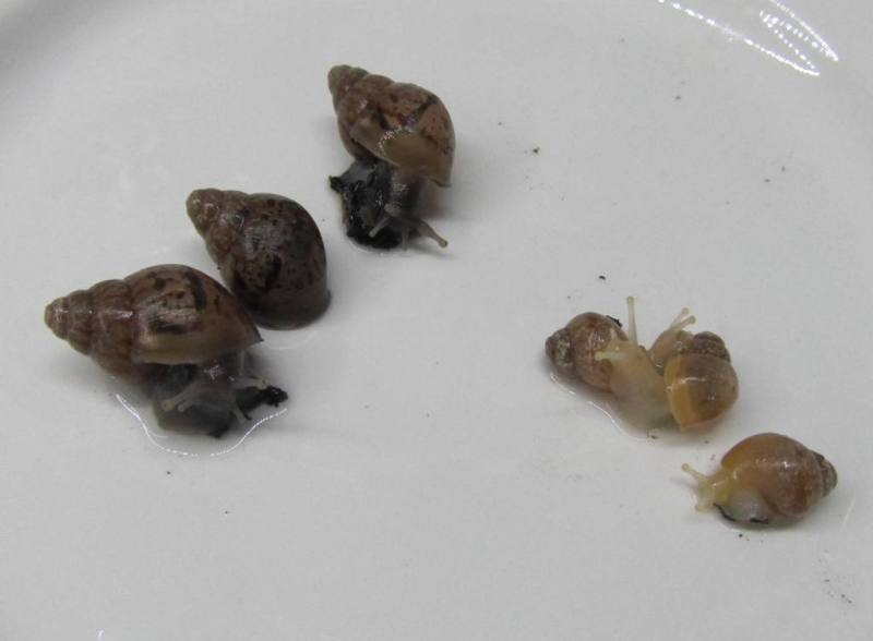 Bei mir wohnen seit letztem Jahr zwei Achatschnecken, verkauft wurden sie mir als Achatina fulica White Jade.