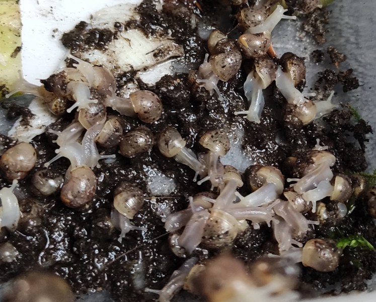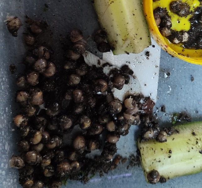 Dies tue ich heute zum zweiten Mal (beim ersten Mal habe ich die deutlich zu kleinen Baby-Schnecken selketiert die seit den Schlupf so gut wie gar nicht gewachsen waren da lag es etwa bei 15 Stück)