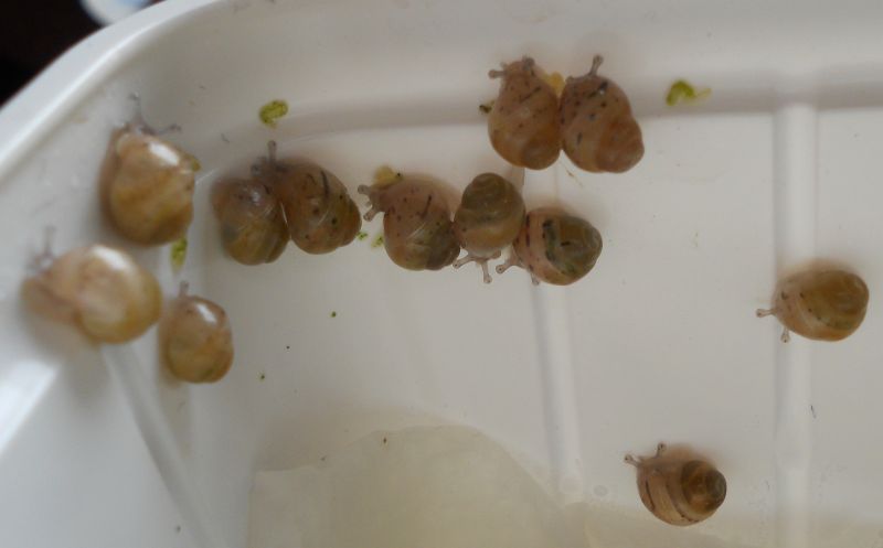 Hab die kleinen dann alle umgesetzt und ihnen Heilerdeschlamm angeboten. Zehn sind jetzt etwa wieder munter, der Rest ist wohl tod. Ist sehr traurig, aber ich hätte einen Großteil eh verfüttert, wenn sie groß genug gewesen wären.