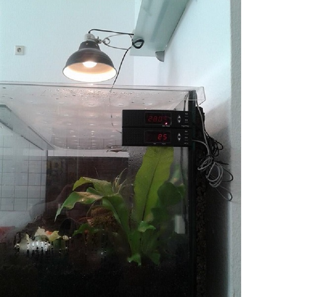Also ich habe die 2 letztes Jahr die eine im Juni sie sollte 7 Monate gewesen sein und die andere im August sie sollte 9 monate gewesen sein also sind die beiden so etwa 15 bis 17 Monate alt wenn das Alter stimmt wo ich sie erworben habe.Sie haben am 16.02.14 den Akt vollführt und gester im laufe des Tages hat sie sie gelegt.Also waren etwa 3 Wochen dazwischen.Jetzt was zu Meinem Becken.Die Temperatur ist Tagsüber,also von 6 Uhr bis 20 Uhr auf 27 bist 29 Grad.Es schwankt immer etwas kommt drauf an wie oft man im Becken zu tun hat.Ab 20 Uhr werden die 2 Heizmatten eine hinten am Becken mit 30 Watt und eine an der Seite mit 10 Watt und ein Wärmespot der auch mit 50 Watt dabei ist abgeschaltet und es kühlt nachts dann so auf 23 bis 24 Grad ab.Habe mein Becken extra noch hinten und an der Seite mit 20mm Schwarzkorkplatten gedämmt.Die Luftfeuchte liegt immer Tagsüber so bei 85 % und Nachts bei 93 % .