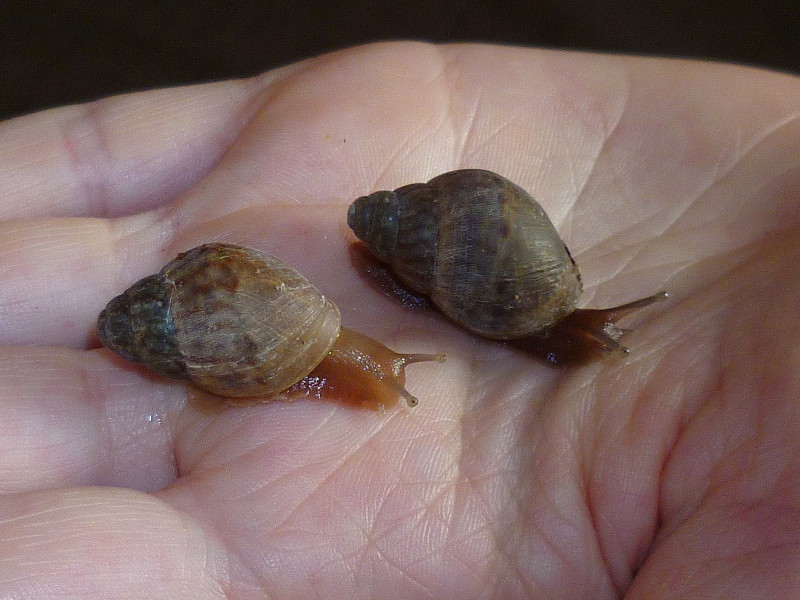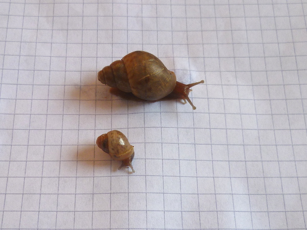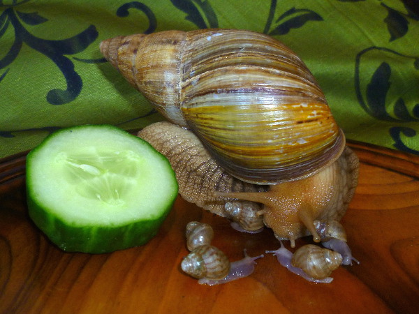 Hier seht ihr eine der vier großen mit ein paar Schneckenkindern, ca. 3 Tage nach dem Schlupf